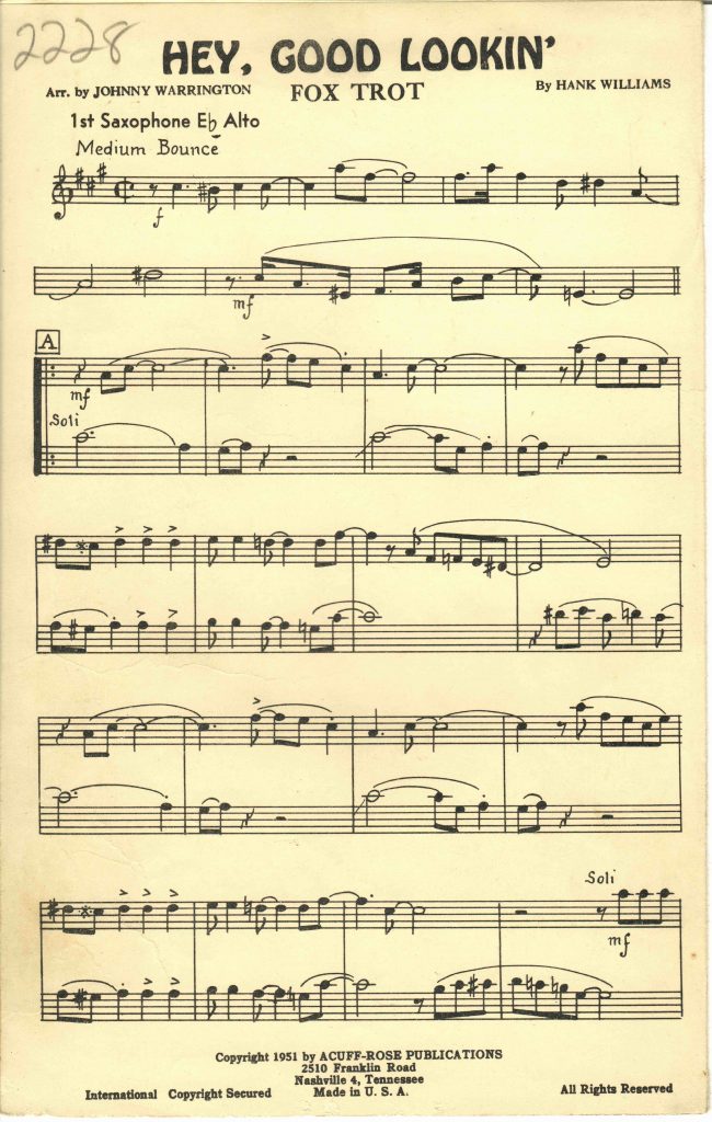 Abstract: The James and Randall Lester Big Band Sheet Music collection contains hundreds of pieces of sheet music for big band, swing, and jazz standards. The sheet music itself was a gift to donor Randy Lester’s brother James, an accomplished saxophonist, from his father. The provenance before this is murky, with rumors of an association with big band leaders Tommy and Jimmy Dorsey. Some of the sheet music is stamped “WJR,” the local Detroit radio station, and was potentially used for live broadcasts of big band music. The sheet music is organized alphabetically by title, and contains separate charts for each instrument in the arrangement. Some of the sheet music is commercially released copies with hand-written notes, others are completely hand-notated charts. All illuminate the level of musicianship present in big band arrangements.