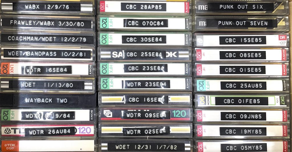 Abstract: The Randy Mavis Radio Cassettes are a collection of recordings made off the air and potentially in person by Randy Mavis in the 1970s and 1980s. The majority of the cassettes contain radio programs from stations like WABX, WDET, and WDTR. There are also live concert recordings of great quality, including a 1980 Dave Mason show at the Royal Oak Theatre, a 1980 Pat Travers show in Detroit, and concerts by Michigan legends like Iggy and The Stooges and Bob Seger. It is known that some of these shows were broadcast on the radio, and it is likely that is where these recordings originate. The collection covers a wide-range of genres, including rock n’ roll, punk, psychedelic, and early electronic music.